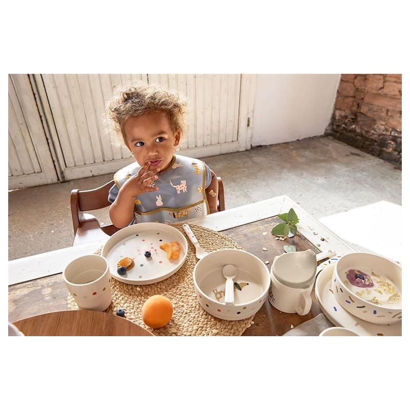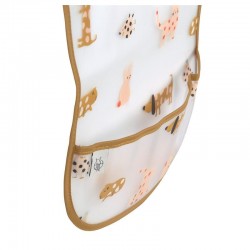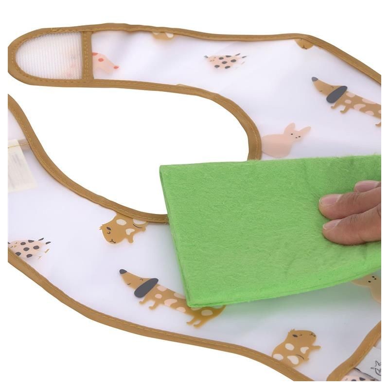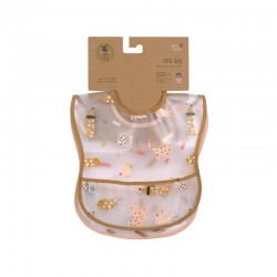 Babero infantil fabricado en EVA (Etileno-Vinil-Acetato) 100% ultra resistente al agua que mantiene limpio y seco al bebé cuando come o bebe. Muy ligero y fácil de limpiar con un paño húmedo.