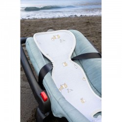 - La parte donde va sentado el bebé es suave y muy transpirable. Realizado en algodón biológico, absorve la humedad y garantiza que el bebé viaje fresquito.