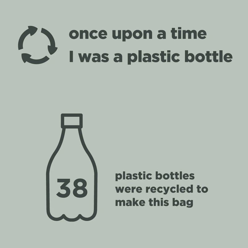 Está 100% fabricada con poliéster reciclado, además, se reciclan 38 botellas de PET al fabricar tanto el tejido exterior como el revestimiento interior.