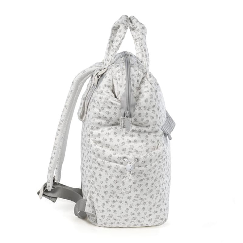 MOCHILA CAMBIADOR LITTLE BLOOM FLOWERS GREY DE PASITO A PASITO
