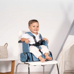 - Arnés de seguridad de 5 puntos ajustable que sujeta al niño firmemente en el asiento.