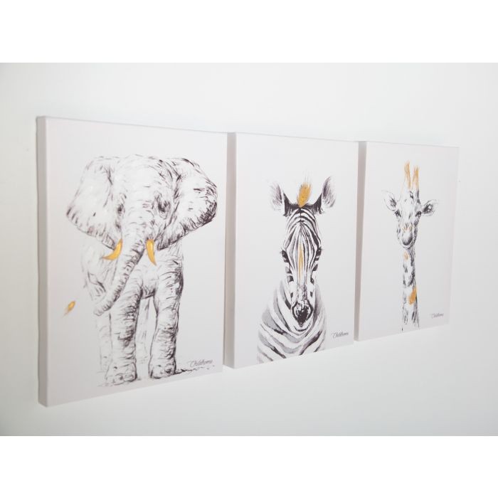 Esta hermosa pintura de una cebra tiene elegantes detalles dorados. Es la decoración perfecta para una habitación infantil de moda.