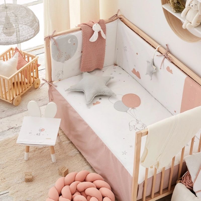 Edredón + protector cuna rosa 60x120 Jolie de Bimbidreams