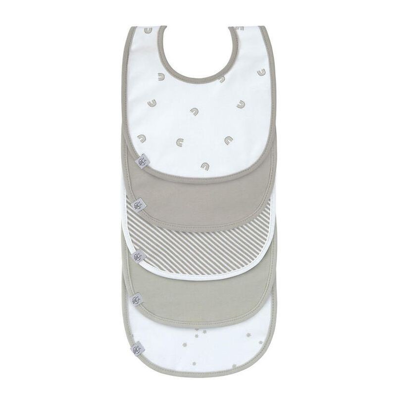 Con los prácticos baberos impermeables, la ropa está bien protegida durante los primeros intentos de comer del bebé.