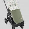 Saco para sillas de paseo confeccionado en loneta "waterproof" combinada con bambula de estampado granja en el interior. Cremalleras laterales para convertir el saco en colchoneta. Refuerzo de polipiel en los pies. Relleno del cubrepiés extraible.
