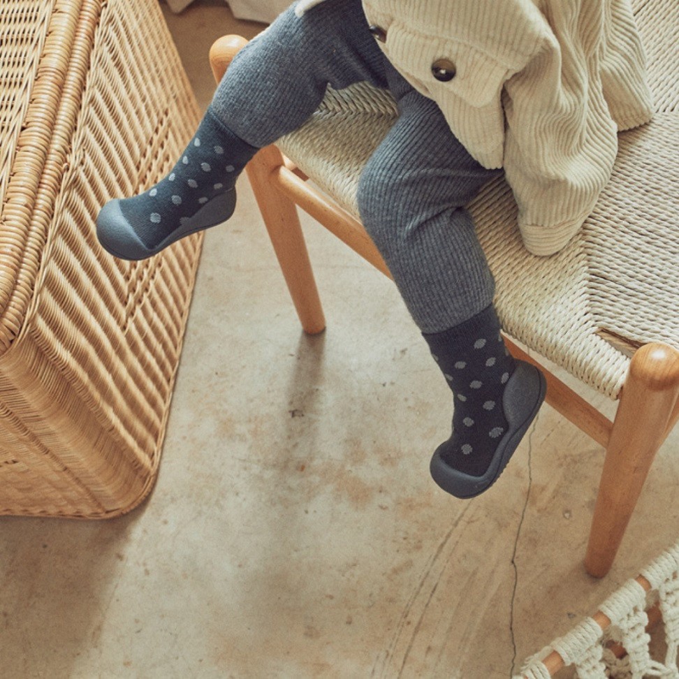 Attipas es un calzado para bebé totalmente responsable y ergonómico diseñado a base de un calcetín y una suela antideslizante que se acopla totalmente al pie del bebé como si de una segunda piel se tratase. Attipas es un zapato totalmente flexible, con una puntera ancha diseñada para proporcionarle al bebé un libre movimiento de sus pies y deditos, lo que resulta fundamental para el correcto desarrollo del pie del mismo. Por ello Attipas es ideal para la fase de gateo y primeros pasos. Los bebés han de ir descalzos hasta adquirir el patrón de marcha para garantizar ese correcto desarrollo del pie. Sabemos que en algunas ocasiones eso no es posible, cuando el bebé va a la guardería, a la escuela infantil, va al parque, sale a la calle, hace frío, etc... en esas situaciones, cuando no nos queda otra que calzar al bebé, lo ideal es Attipas. El calzado que ofrece la sensación de andar descalzo sin interferir en el desarrollo del pie del bebé pero protegiéndolo de los posibles peligros de su entorno. El bebé siempre descalzo, y cuando no pueda ir descalzo, Attipas.